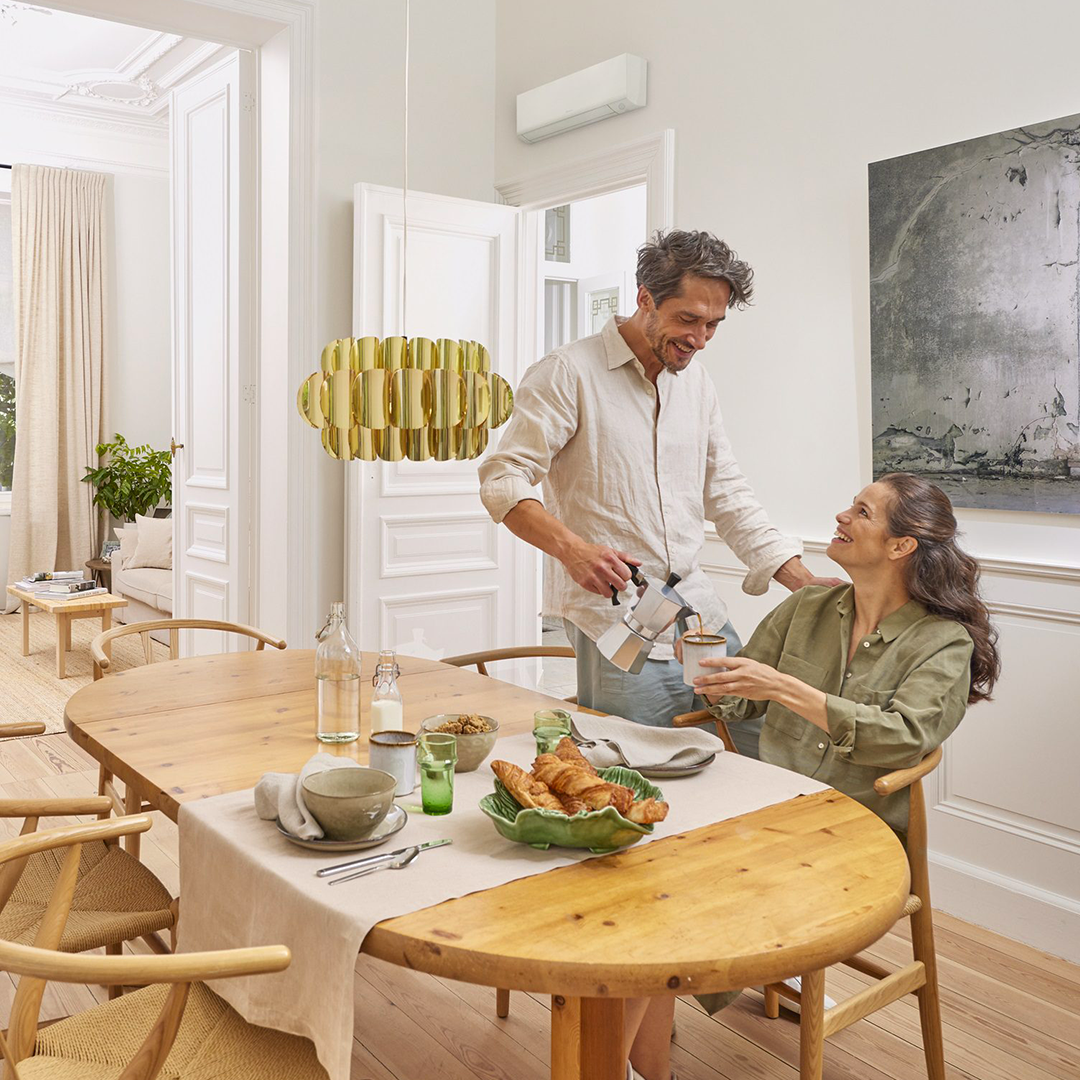 Spoľahlivé a energeticky úsporné riešenie. Presne týmito slovami možno charakterizovať klimatizáciu Daikin Comfora s účinnosťou A++. Je prakticky nepočuteľná – prevádzka jednotky je taká tichá, že takmer zabudnete, že ju tam máte. Jednotka má diskrétny a štýlový dizajn, ktorý pasuje každému interiéru. Strieborný filter zachytáva alergény a zabezpečuje prívod čistého vzduchu.